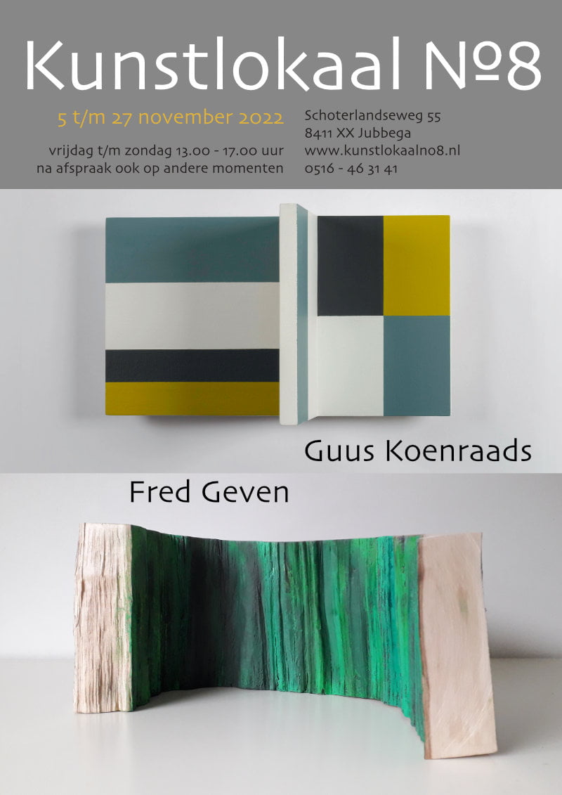 Zet twee kunstenaars bij elkaar die in hun werk sterk van elkaar verschillen… Bij Kunstlokaal No8 in Jubbega weten ze heel goed hoe effectief zo’n opzet is. De expositie Gedacht en geleefd, met bijna dertig werken van Guus Koenraads en Fred Geven, is opnieuw een schoolvoorbeeld van zo’n interessante duo-presentatie.