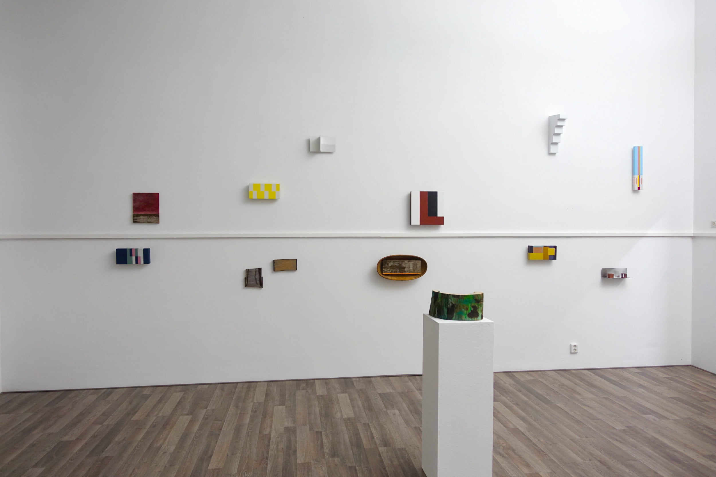 Kleur, gemengd en opgebracht in uiterst zorgvuldig geschilderde lagen. Guus Koenraads maakt afgewogen geometrische werken. Door de combinatie van vorm en kleur ontstaat een subtiel architectonisch beeld. De compositie zet zich voort in de werkelijke ruimte doordat de vlakken zich vouwen over de zijkanten van het paneel en door de schaduwen op de wand. Ook maakt Guus puur driedimensionale objecten. De ruimtelijke beleving blijft niet louter abstract, wordt emotioneel. De toewijding is voelbaar.
