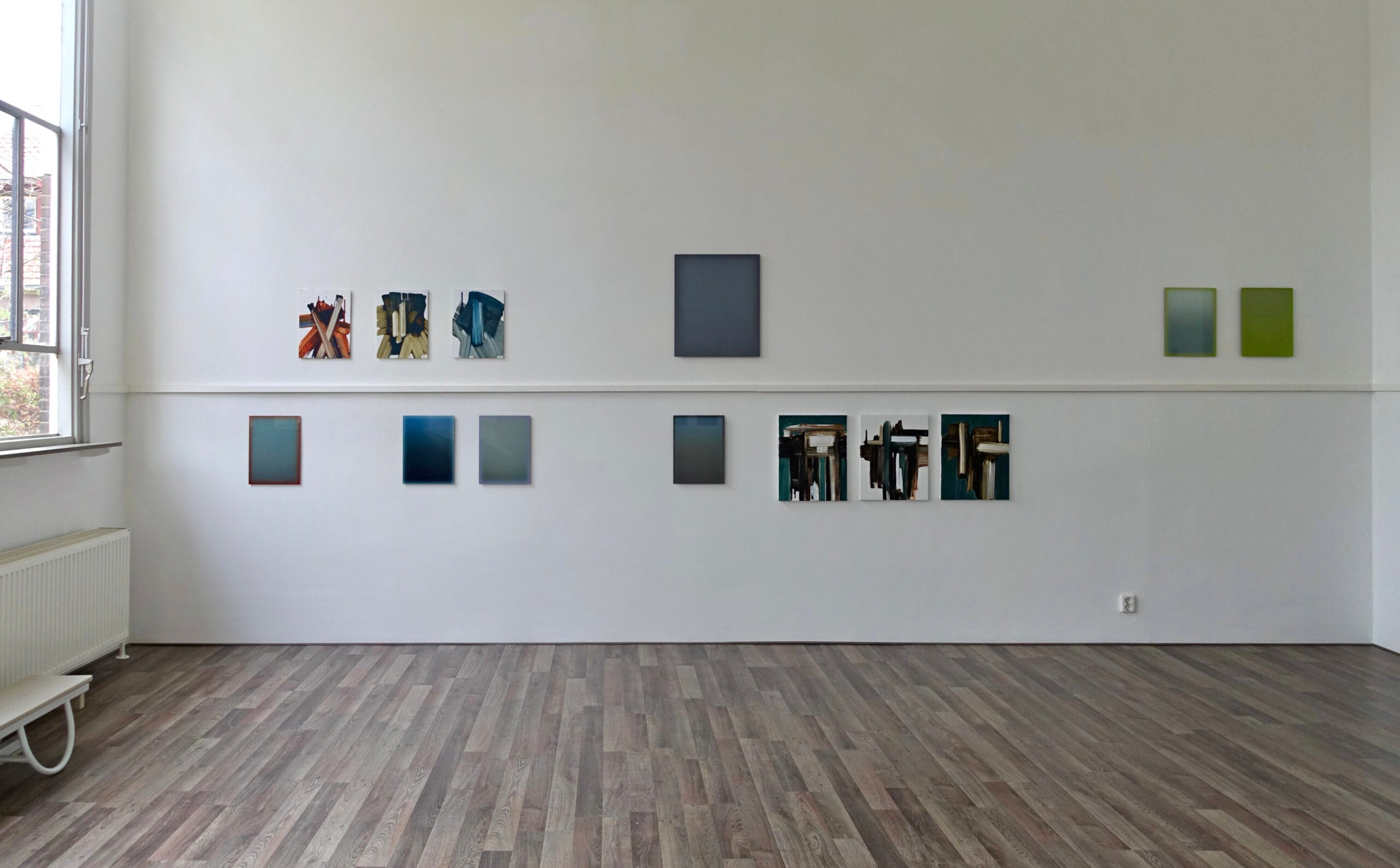 74 Els Moes | Nies de Vuijst, duotentoonstelling. Hèt recept voor een schilderij bestaat natuurlijk niet. Twee ingrediënten zijn wèl essentieel, zonder deze kun je geen schilderij maken: beweging en kleur. Het schilderen zelf, dus de handeling waarmee de verf wordt opgebracht, en de kleur in de verf, het pigment. Els Moes en Nies de Vuijst tonen hiermee de kracht van kleur en beweging, op hun eigenzinnigste manier. Het resultaat is bijna tegengesteld. Nies bouwt met grote gebaren abstracte eigen werelden. Els schildert bijna monochrome, gladde oppervlakken in uiterst subtiel verlopende tinten. Als je intens kijkt, komt een enorme diepte tevoorschijn.