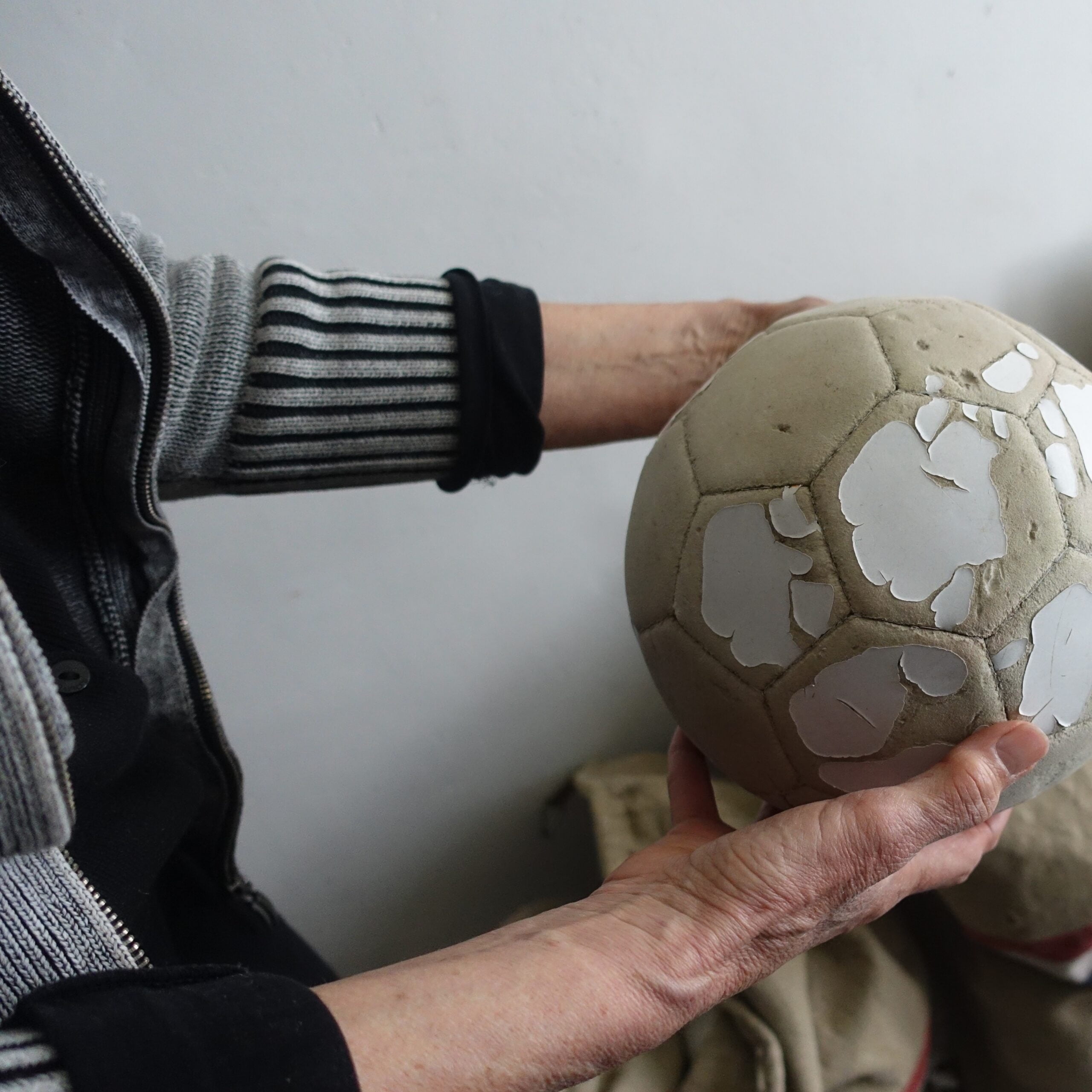 Enkele jaren geleden werd ze getroffen door de aanblik van een totaal uitgediende voetbal: ‘Het lijkt wel een versleten planeet’.